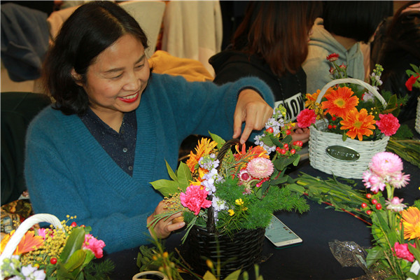 在老師的指導下,大家開始修剪枝葉、編綠葉、擺造型……一支支嬌艷欲滴的鮮花通過大家精妙的構(gòu)思搭配,不一會就變成一籃藍精美的花藝作品?;顒蝇F(xiàn)場花香四溢、滿室芬芳,大家與花相伴,歡聲笑語,度過了一個開心快樂的節(jié)日。